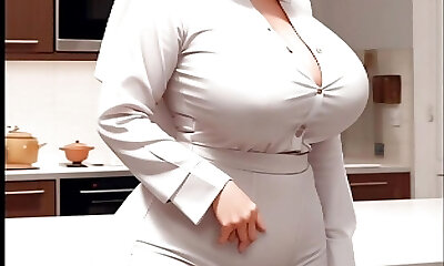 Busty mature milf maid clean in mini dress - Mini Skirt - Bbw SSBBW cleaning gal displaying big ass close up panties to the side