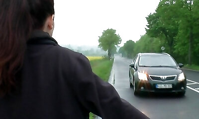 Hitchhiking Bigtitted Eurobabe Poked On Car