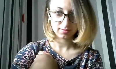 Beautiful girl with glasses easily knuckle her pussy