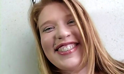 Sassy ash-blonde siren swallows some cum in a gloryhole