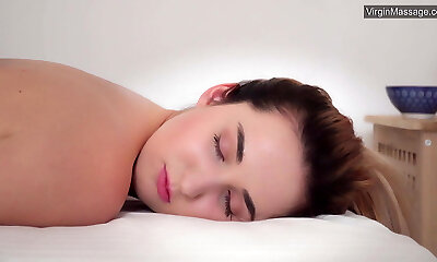 Virgin tight babe Jasmin Aviafan enjoys legs and bosoms massage