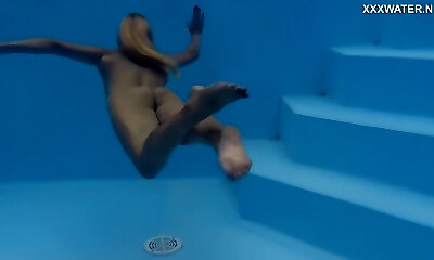 Mouth-watering all alone busty babe Deniska looks sexy underwater