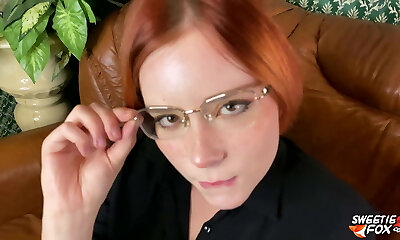 Pretty blondie nubile gives head to the ugly older man in glasses