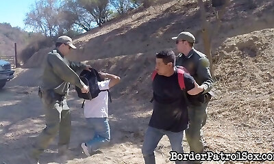 Cop tearing up a Latina honey up against at tree in the desert