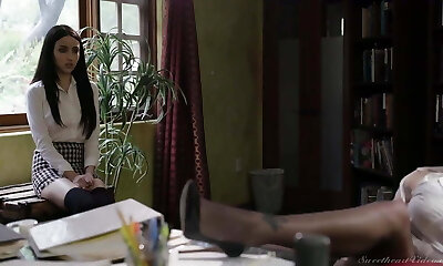 Boss Anna Claire Clouds stretches legs for secretary Penelope Kay