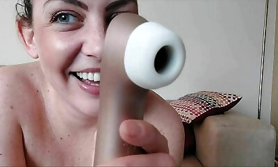 Ardent huge brunette mom squeezes faux-cock between her huge slack bra-stuffers