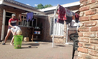 Step Son-in-law poked Step Mom while she is stuck in washing machine Big Internal Cumshot Daddy is not home